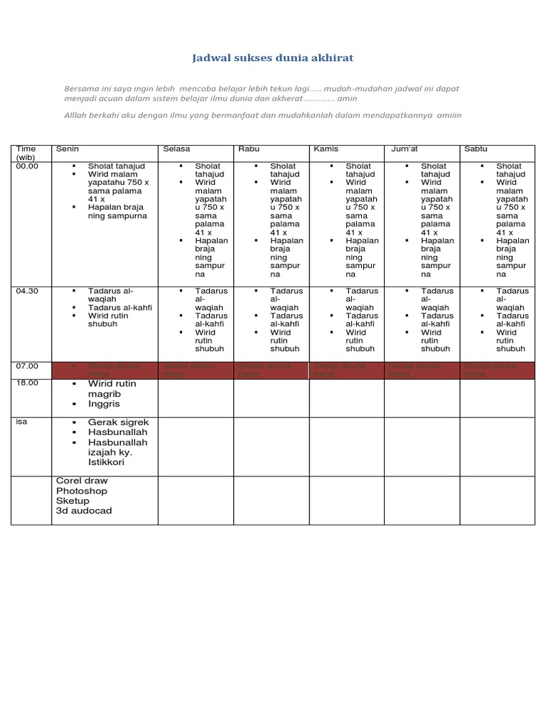 Yuk Simak Jadwal Harian Muslimah Sukses Dunia Akhirat. Jadwal sukses dunia akhirat. catatan guru pembelajar sukses dunia akhirat dengan muslim planner. planning harian smart inspiring seorang muslimah tb ramadhan agency. planning harian smart dan inspiring seorang muslimah kiblat muslimah. catatan guru pembelajar sukses dunia akhirat dengan muslim planner Jadwal terkait : Sukses