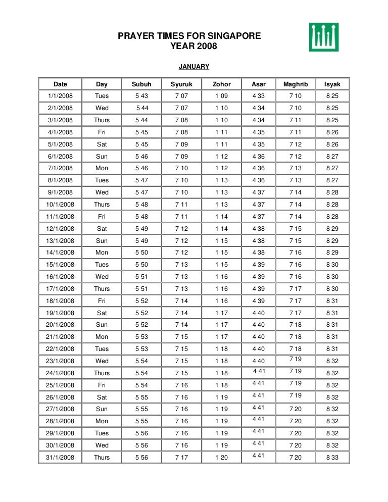 Yuk Cek Waktu Solat Singapore Pdf. S muis gov sg media files corporate site prayer timetable 2018 pdf e2 80 8b. . singapore prayer times today salah namaz timings. singapore prayer 31 05 free download. what time is maghrib in singapore Jadwal terkait : Waktu